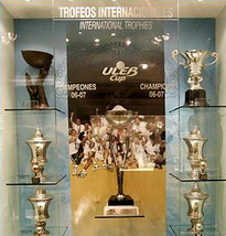 Посетить «Сантьяго Бернабеу» не зайдя музей клуба – это просто грех. Таково количества титулов еще нигде нету. Баскетбольная победная история менее впечатляющая, в отличие от футбольной, но и кудесники «оранжевого» мяча принесли клубу не мало славы и трофеев. Кубок УЛЕБ выигранный «Реалом» пару дней назад, весь следующий сезонов будет украшать музей, пока «Реал» не пойдет на штурм Евролиги, а Кубок УЛЕБ не получит нового обладателя. На испанской арене «Реал Мадрид» всегда был одной из сильнейших команд, в Европе победы добывались реже, но все-же на данный момент в музее: 4 Кубка Европы (83/84, 89/90, 91/92 и 96/97), 3 Межконтинентальных Кубка (76/77, 77/78 и 78/79), 1 Кубок за победу в Клубном Чемпионате Мира (80/81),а также трофей под названием Кубок Корас (Copa Korac) – выигранный в сезоне 87/88. Отныне за витриной красуется и Кубок УЛЕБ, который сияет под словами – «Победители Кубка УДЕБ 06-07». Источник http://real.pfpl.ru