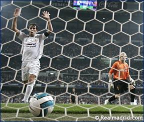 Переиграв на своем поле в матче 31-го тура Примеры «Валенсию» со счетом 2:1, «Реал» остается в чемпионской гонке. Скажу Вам честно, amigos, этого матча я боялся, как боюсь любого матча «Реала» с сильным соперником. А в том, что «Летучие мыши» - соперник не из слабых, можно не сомневаться. Парни Кике Флореса дальше всех испанских клубов прошли в Лиге чемпионов, а недавняя победа над еще одним соискателем «золота» «Севильей» говорит об этом во весь голос. Когда раздался стартовый свисток арбитра, мое напряжение достигло пика, но через минут пять вдруг пришла уверенность, что все будет хорошо. «Мадрид» держал мяч, и пусть его атаки большей частью разбивались о сумасшедший прессинг соперника, было понятно, что так долго «Мышки» не выдержат, и прежде всего физически. «Реал» постепенно наращивал давление на оборонительные порядки соперника, и временами гости держали на подступах к своим воротам не меньше семи (!) человек. Впереди «Валенсия» в первую очередь рассчитывала на взрывного Давида Вилью, который пару раз имел возможность убежать на рандеву с Икером Касильясом, но здесь уже пара наших центральных защитников в составе Каннаваро и Серхио Рамоса действовали безошибочно. А что «Мадрид»? Поняв, что с помощью мелкого перепаса дойти до владений Канисареса не представляется возможным, хавбеки перешли на тактику забросов в штрафную на ход. Однако, и это себя не оправдало – защитники «Мышек» также не первый день в футбол играют, а потому… Трудный момент настал для «Мадрида». Разыгрался так и не примеривший (надеюсь, что пока – Charley) нашу белоснежную футболку Хоакин. Несколько его передач на ход старому доброму Моро и Давиду Вилье всерьез заставили меня хвататься за сердце и жалеть, что нет под рукой валидола. На 17-й минуте Вилья бил из пределов штрафной, Сильва пяткой подправлял мяч в дальний угол мимо опешившего Икера. Уффффф, пронесло… Мяч катился слишком долго, чуть ли не целую вечность, но в итоге разминулся со стойкой ворот. Ну, а последовавшая за этим контратака наших заставила меня петь от счастья. Гаго, да какой там Гаго, ГАГИЩЩЩЩЩЩЕ выдал столь тонкий и точный пас на юного Торреса, что тому только и оставалось, что вырезать мяч на противоположный угол штрафной. Руди, мчавшийся туда на полных парах, резко затормозил, и пробил, нет – ПРОБИЛ с лета так, что бедному Сантьяго Канисаресу оставалось только своими грустными глазами проводить мяч, влетевший в дальний угол его рамки. Но петь дифирамбы только этим троим я бы не стал. Другая троица в составе Робиньо, Рауля и Игуаина за мгновение до подачи Торреса в унисон рванула в район 11-метровой отметки и увели за собой всю оборону «Валенсии», предоставив голландцу бить без каких-либо помех со стороны соперника. Слава Всевышнему, наши парни не отошли в этот момент к своим воротам, а добавили огня в топку своего паровоза. Будь удача в этот момент на нашей стороне, к концу тайма «Реал» мог выигрывать не один мяч, а все четыре. Один Рауль мог оформить к перерыву дубль, но Капитан в решающие моменты передерживал мяч, затягивая с ударом с убойных позиций. Второй тайм начался ни шатко, ни валко. «Бланкос» никуда не торопились, методично убивая время. И таки доигрались… Хоакин в очередной раз заставил меня высыпать на голову нашего руководства все ругательства, которые только пришли мне в голову, когда на 52-